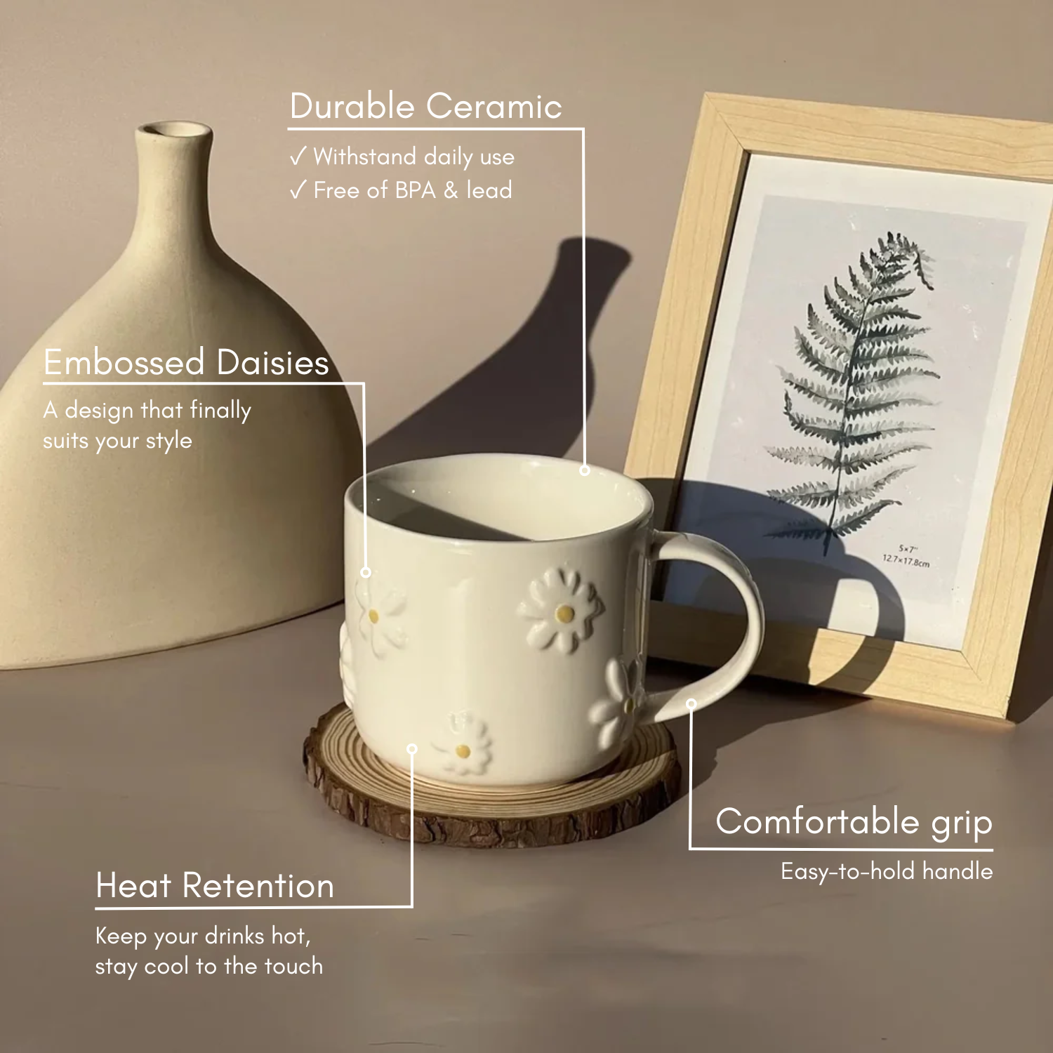 Meet the Daisy Latte Mug, designed for slow mornings & uplifting coffee breaks. Elegant daisy design, comfy handle, and durable ceramic — what's not to love? 🌸